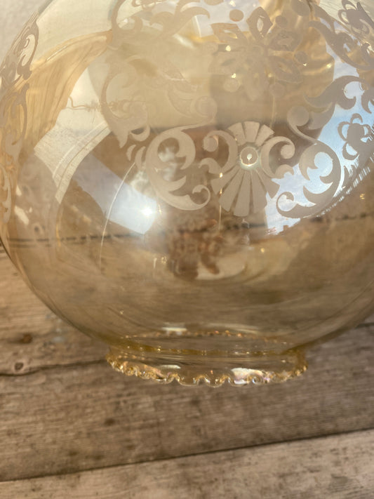Plafonnier vintage en verre ciselé et bronze