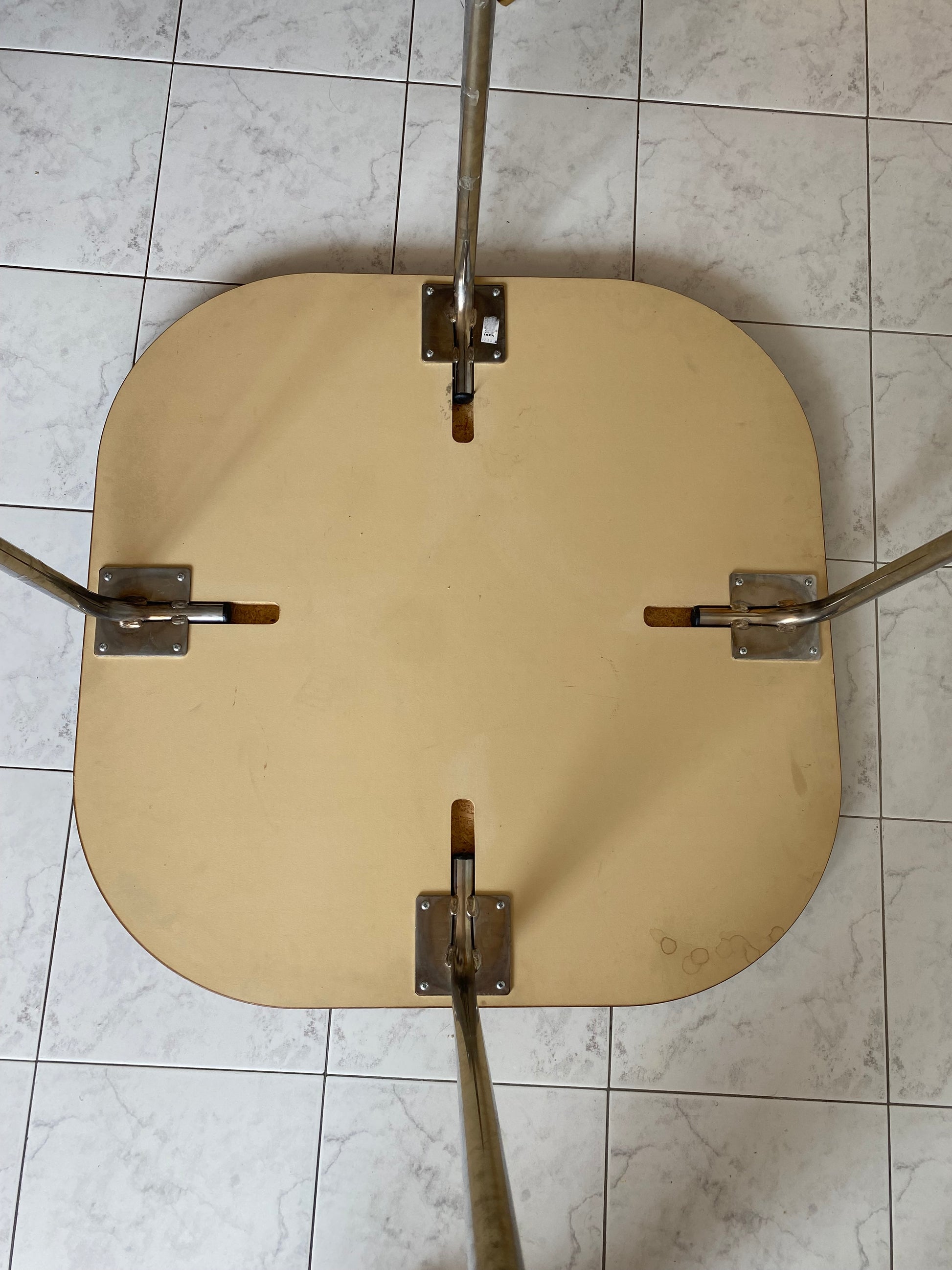 Elle est très pratique et une fois les chaises placées sous la table, elle tient sur seulement 1m². C'est idéal pour ajouter une touche 70's à un salon ou à une cuisine. Son design est minimaliste, très rétro et hyperfonctionnel.