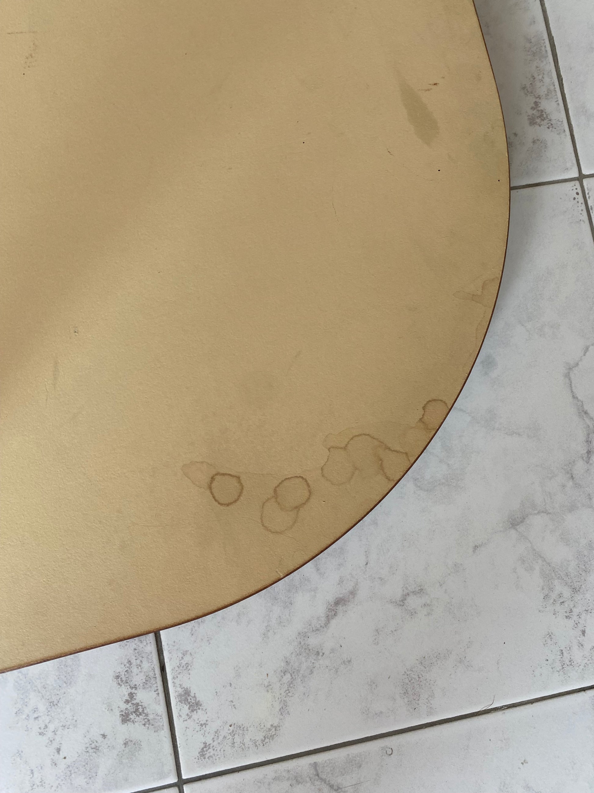 En bon état général, seulement quelques traces d’usage sur le plateau et quelques traces d’usure sur le cuir.